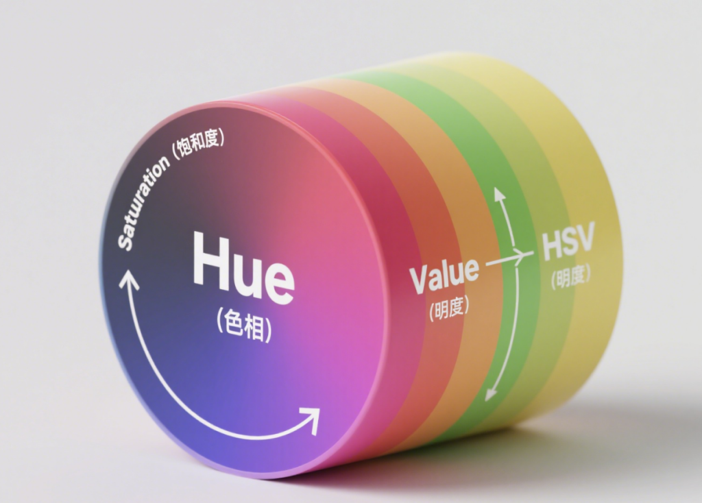 明度(V-Value):表示颜色的明亮程度。明度越高,颜色越亮;明度越低,颜色越暗。范围通常是0-100%(在 OpenCV 中通常是0-255)。