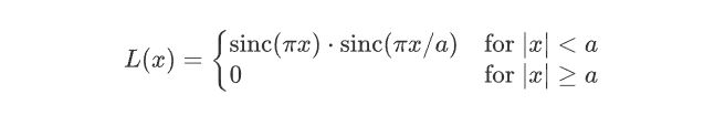 L(x) = \begin{cases} \text{sinc}(\pi x) \cdot \text{sinc}(\pi x/a) & \text{for } |x| < a \\ 0 & \text{for } |x| \ge a \end{cases}